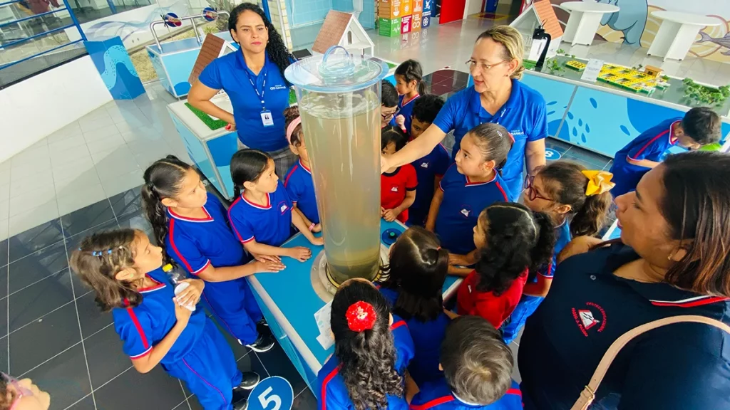 A proposta é transformar aprendizado em vivência. Durante o passeio, os grupos percorrem diferentes ambientes, participam de palestras e experimentos, conhecem a diferença entre redes de água tratada, esgoto e águas pluviais e observam simulações reais do processo de tratamento de efluentes.
